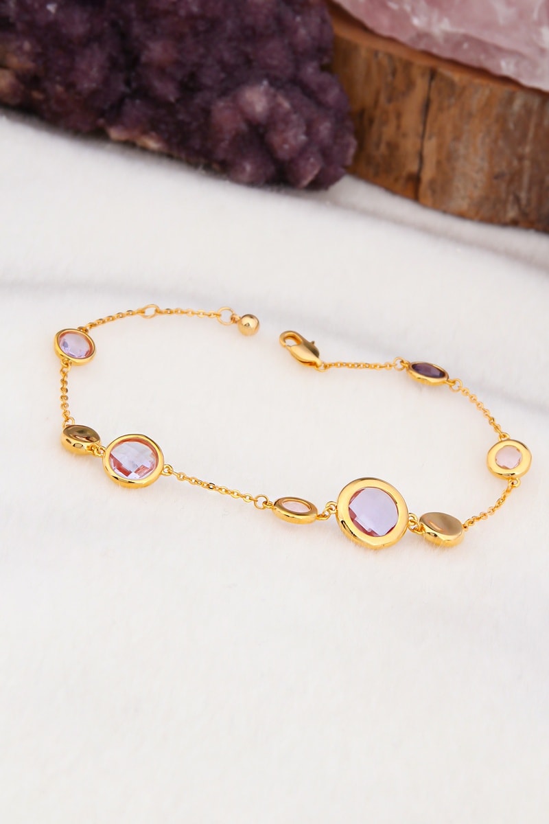 Armband van doublé geelgoud ingelegd met zirkonia’s en kunstparels.