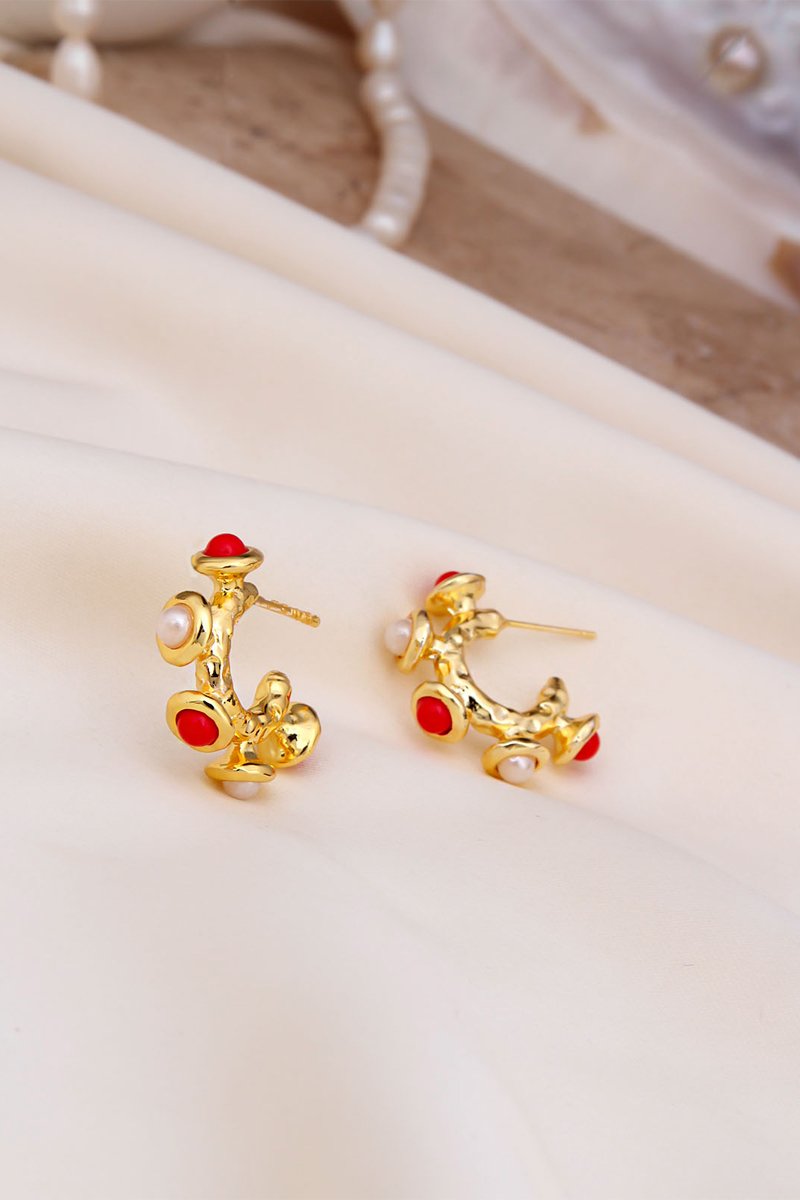 Halve creolen ingelegd met kristallen en cultivéparels.