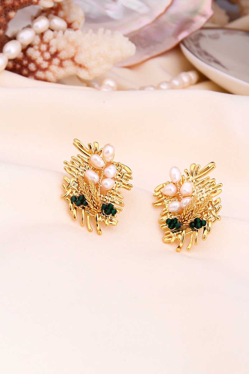 Oorbellen van doublé geelgoud ingelegd met 8 kunstparels.