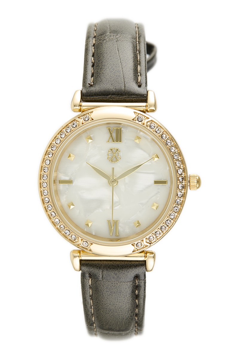 Leren Quartz Horloge - Grijs en Goudkleurig