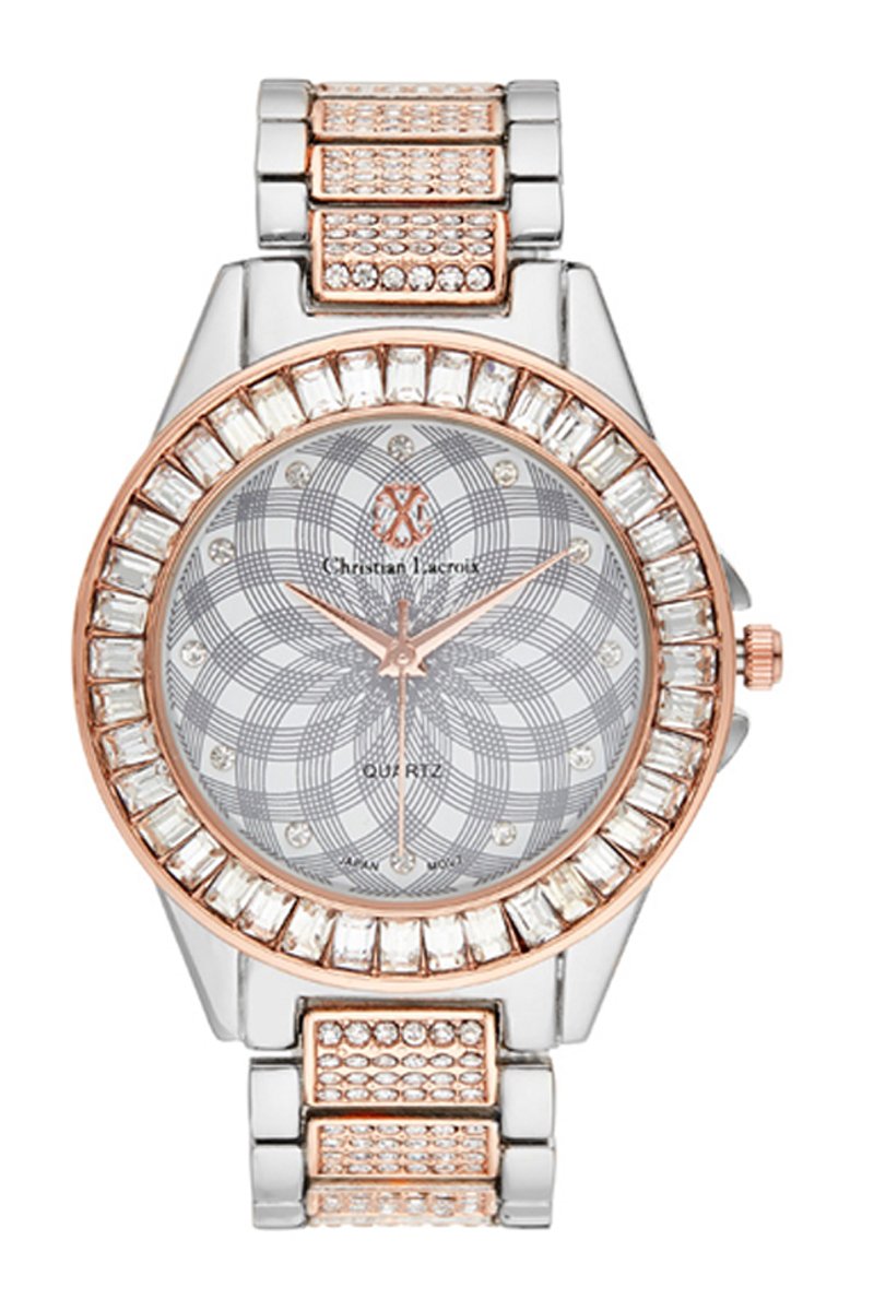 Horlogeband, lunette en wijzerplaat ingelegd met kristallen.