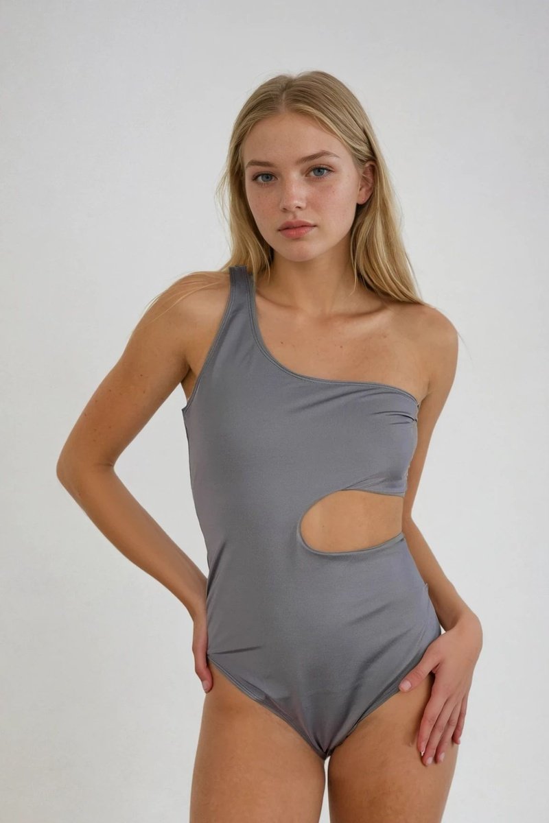Asymmetrisch Badpak - Donkergrijs - Monki