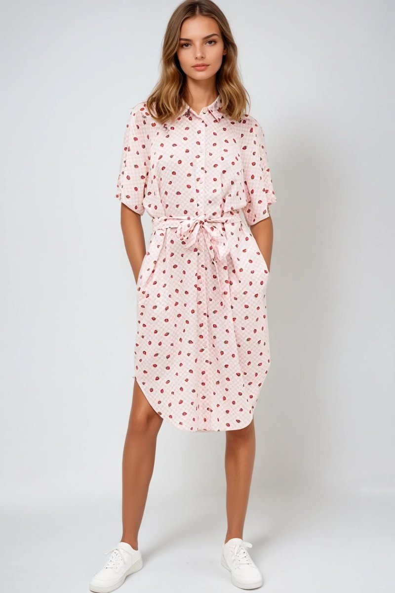 Blouse-jurk met korte mouwen.