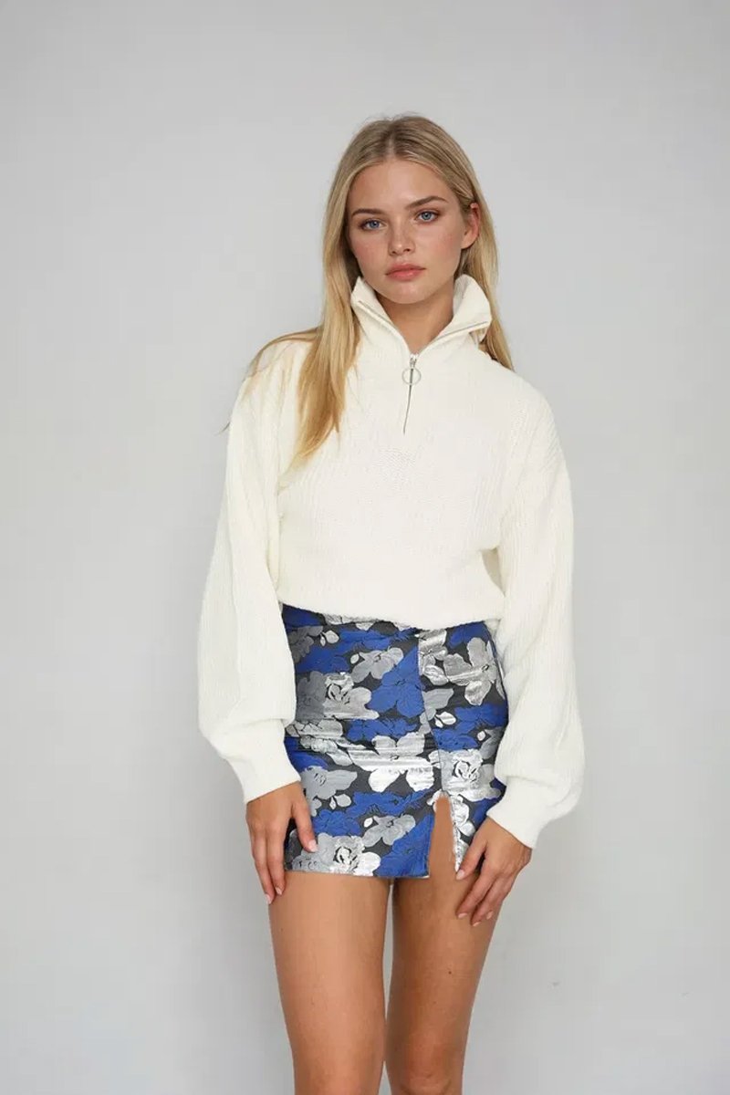 Minirok Hoge Taille - Lichtgrijs en Kobaltblauw - Monki