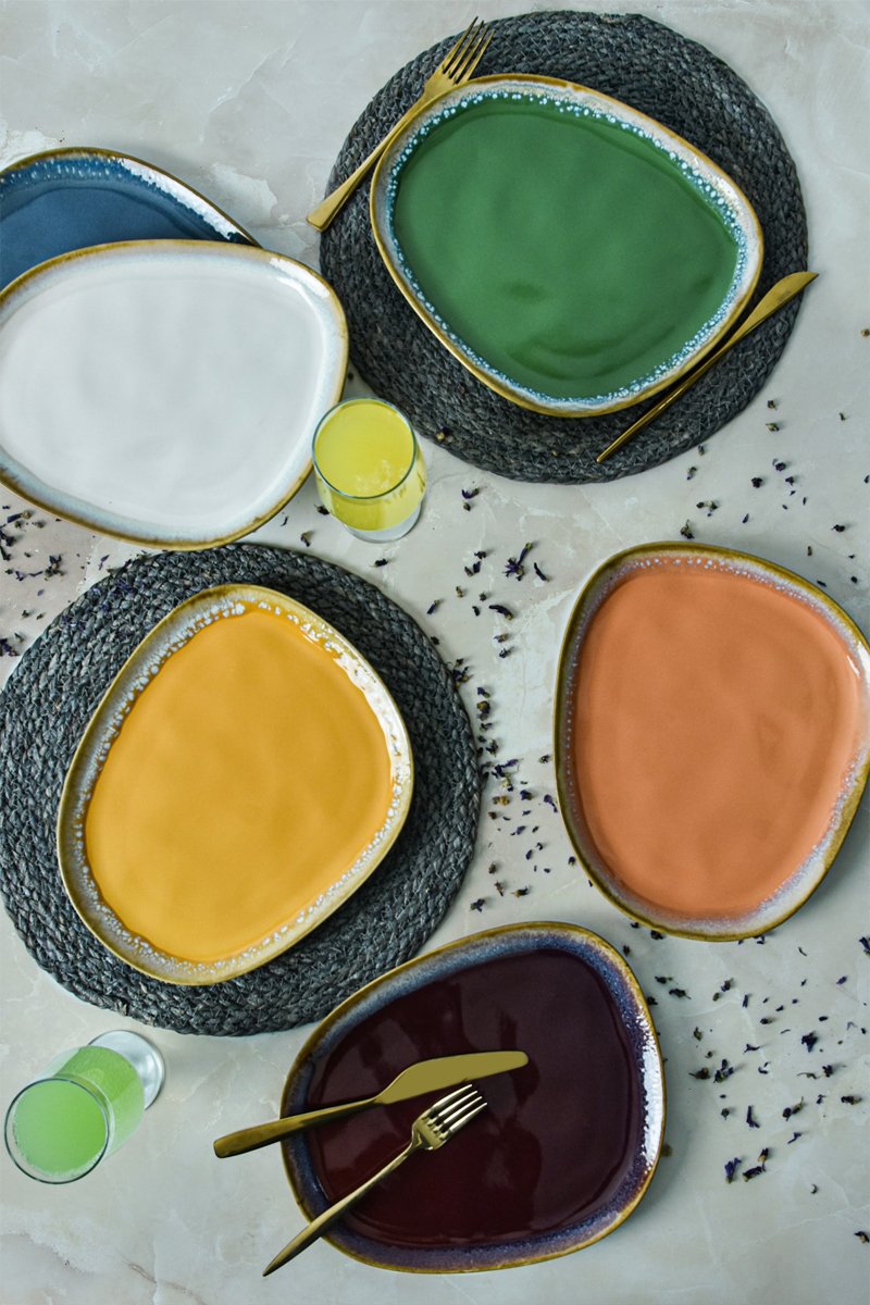 6 platte borden van keramiek.