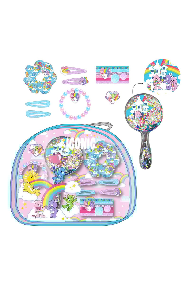 Kleur: roze, lichtblauw, donkergrijs en zwart