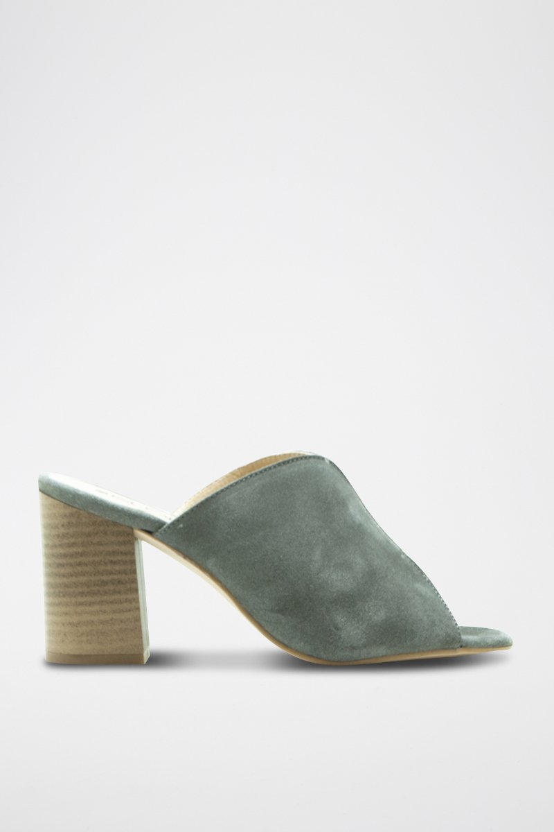 Muiltjes van nubuck met hak.
