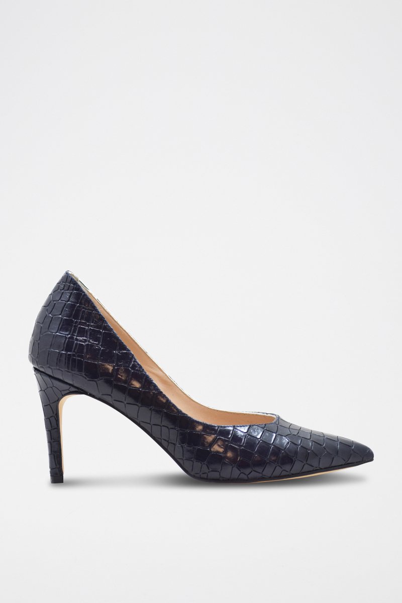 Pumps van leer met krokodillenlook.