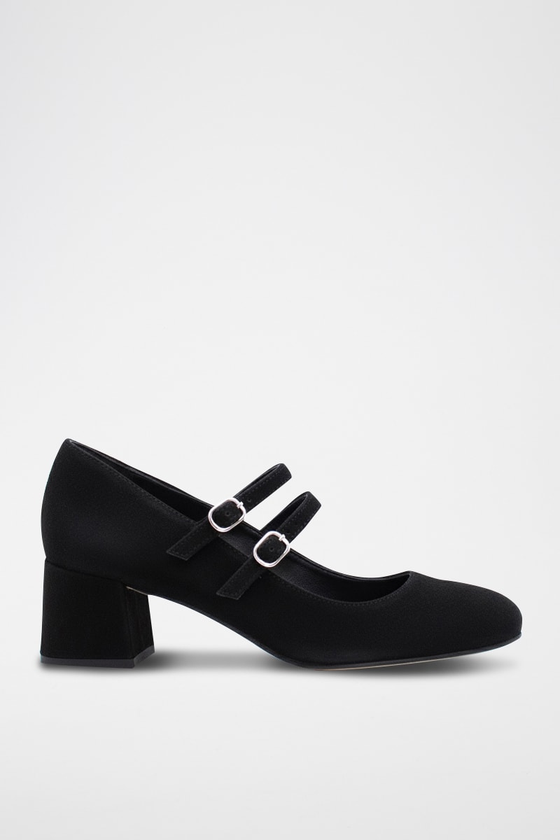Suède Leren Mary Janes met Hak - Zwart
