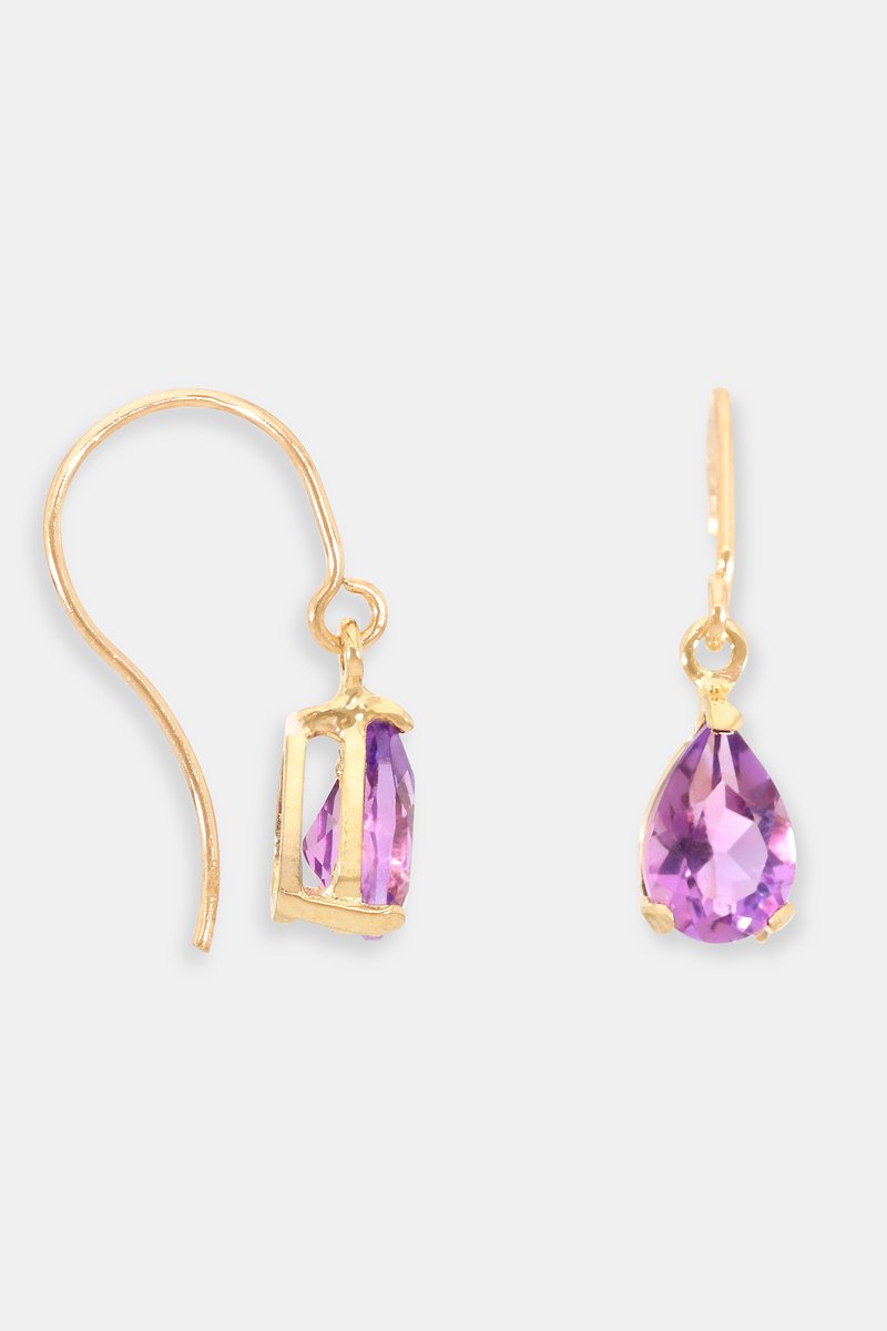 Oorbellen van geelgoud ingelegd met amethist.