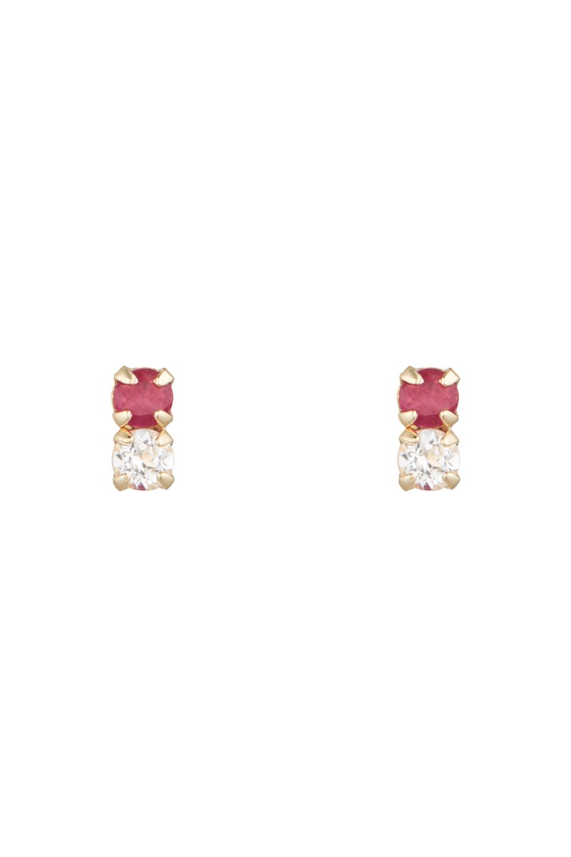 Oorbellen van geelgoud ingelegd met 1 topaas en 1 robijn.