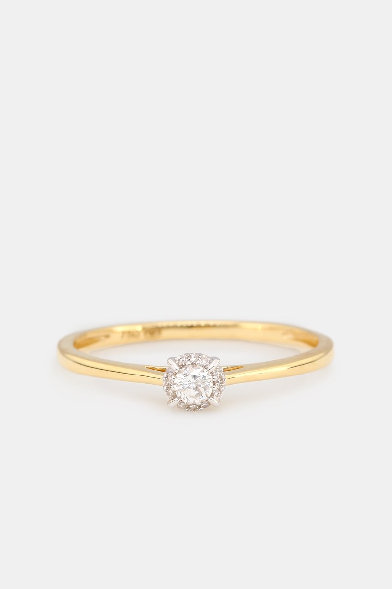 Materiaal: geelgoud 750/1000, diamanten 0,08 karaat/1 en diamanten 0,02 karaat/12