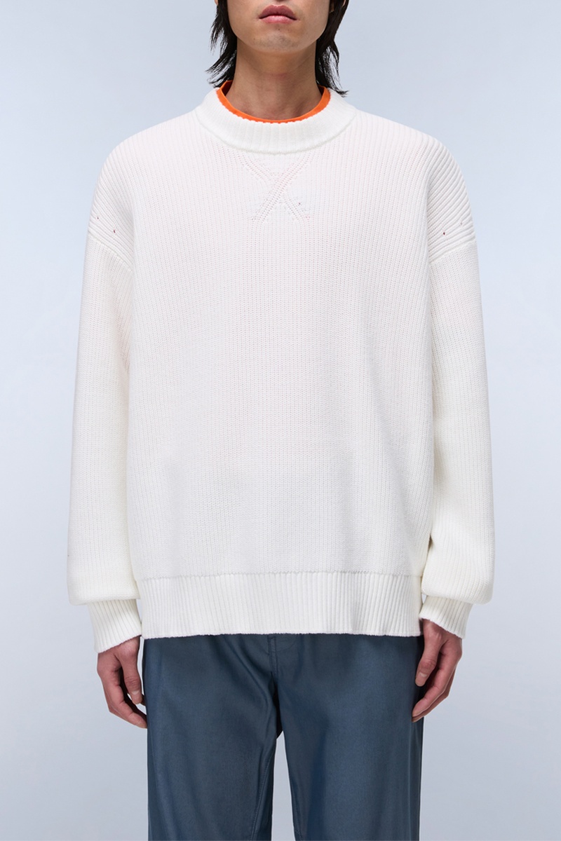 Streepmotief in reliëf op de mouwen en aan de voorkant.