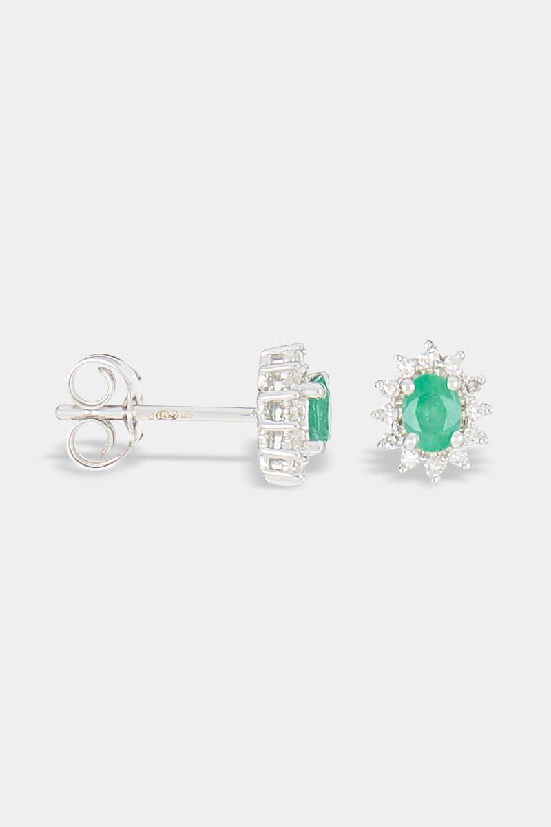 Materiaal: witgoud 375/1000, diamanten 0,12 karaat/24 en smaragden 0,3 karaat/2