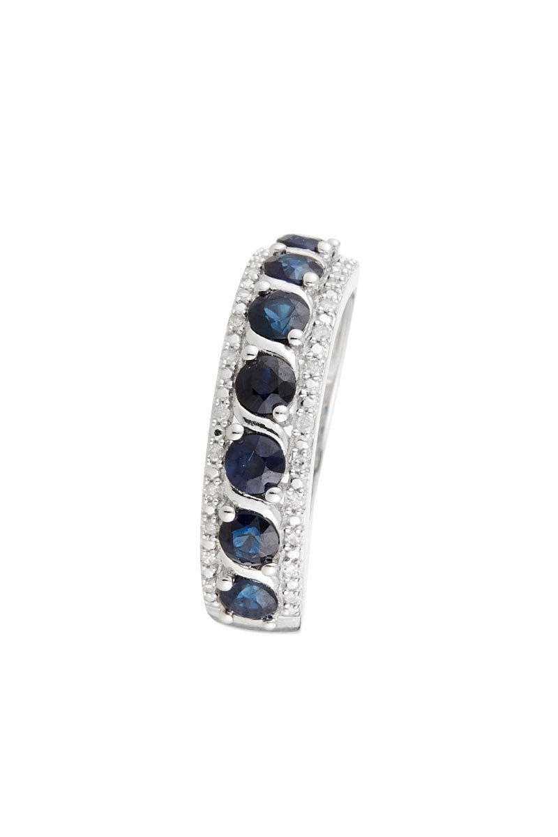 Materiaal: witgoud 375/1000, diamanten 0,08 karaat/24 en saffieren 1,26 karaat/7