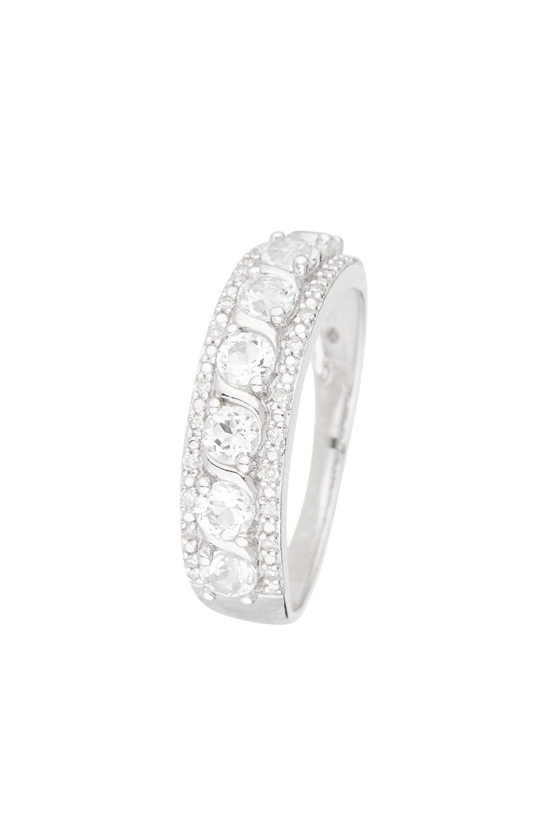 Ring van witgoud ingelegd met 7 topazen en 24 diamanten.