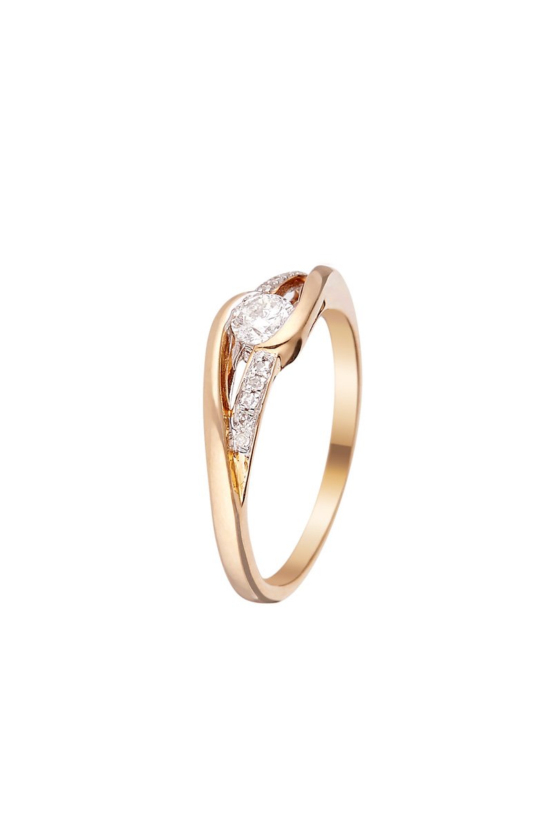 Materiaal: geelgoud 375/1000, diamanten 0,07 karaat/18 en solitair 0,20 karaat/1