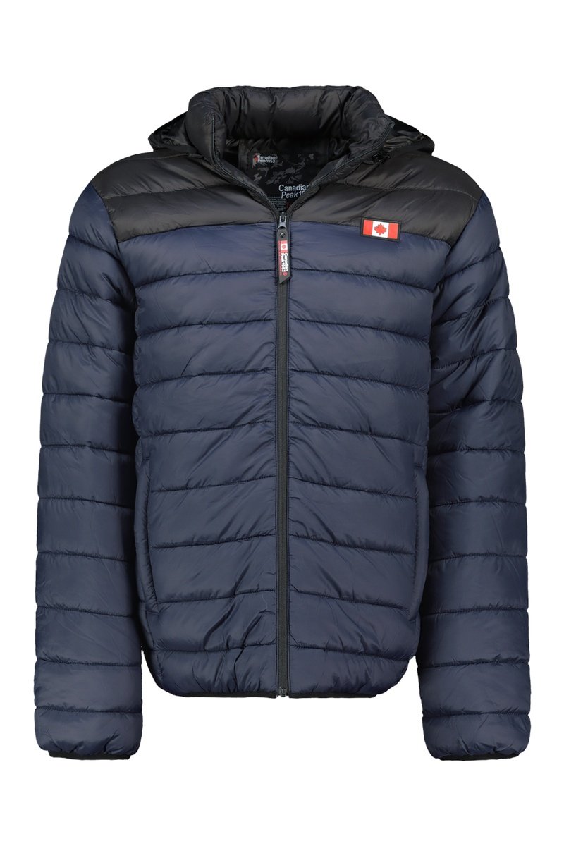 Gewatteerde jas met capuchon.