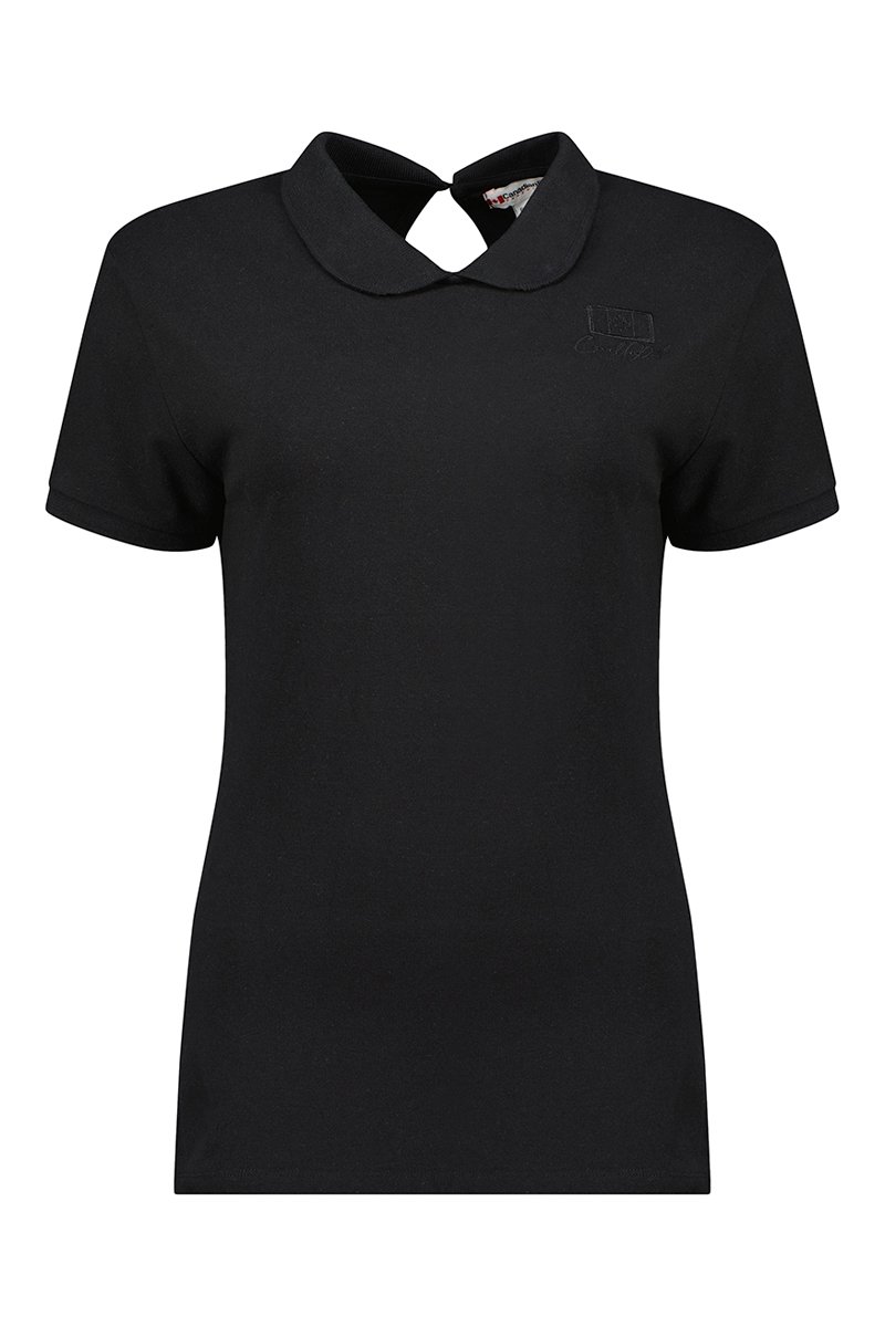 Druppelvormige uitsnijding met knoop aan de achterkant.