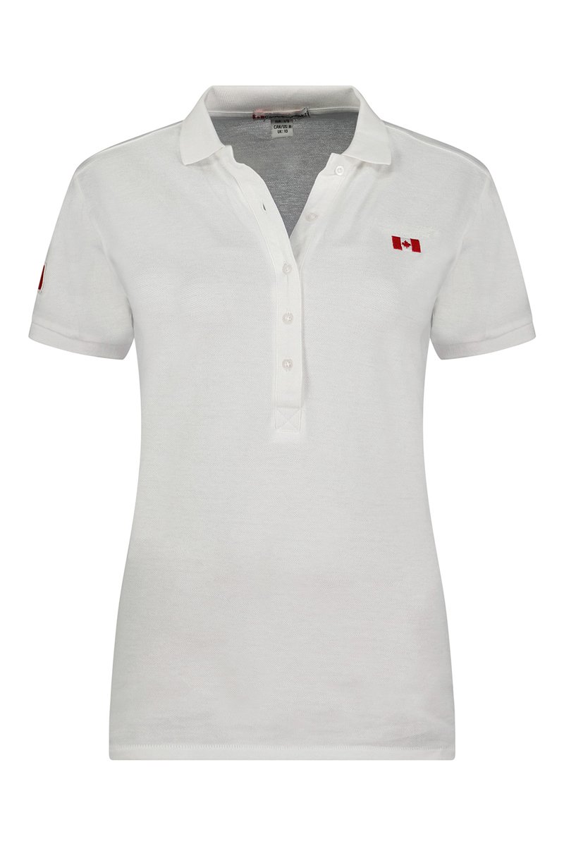 Logo en geborduurd vlaggenmotief op de borst.
