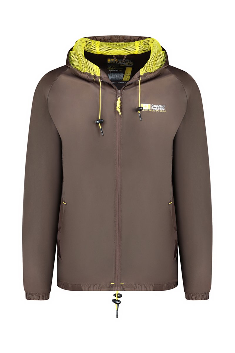 Trekkoorden met details op de capuchon en aan de onderkant.