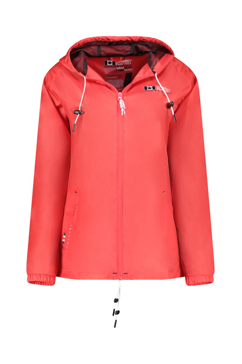 Trekkoorden met details op de capuchon en aan de onderkant.