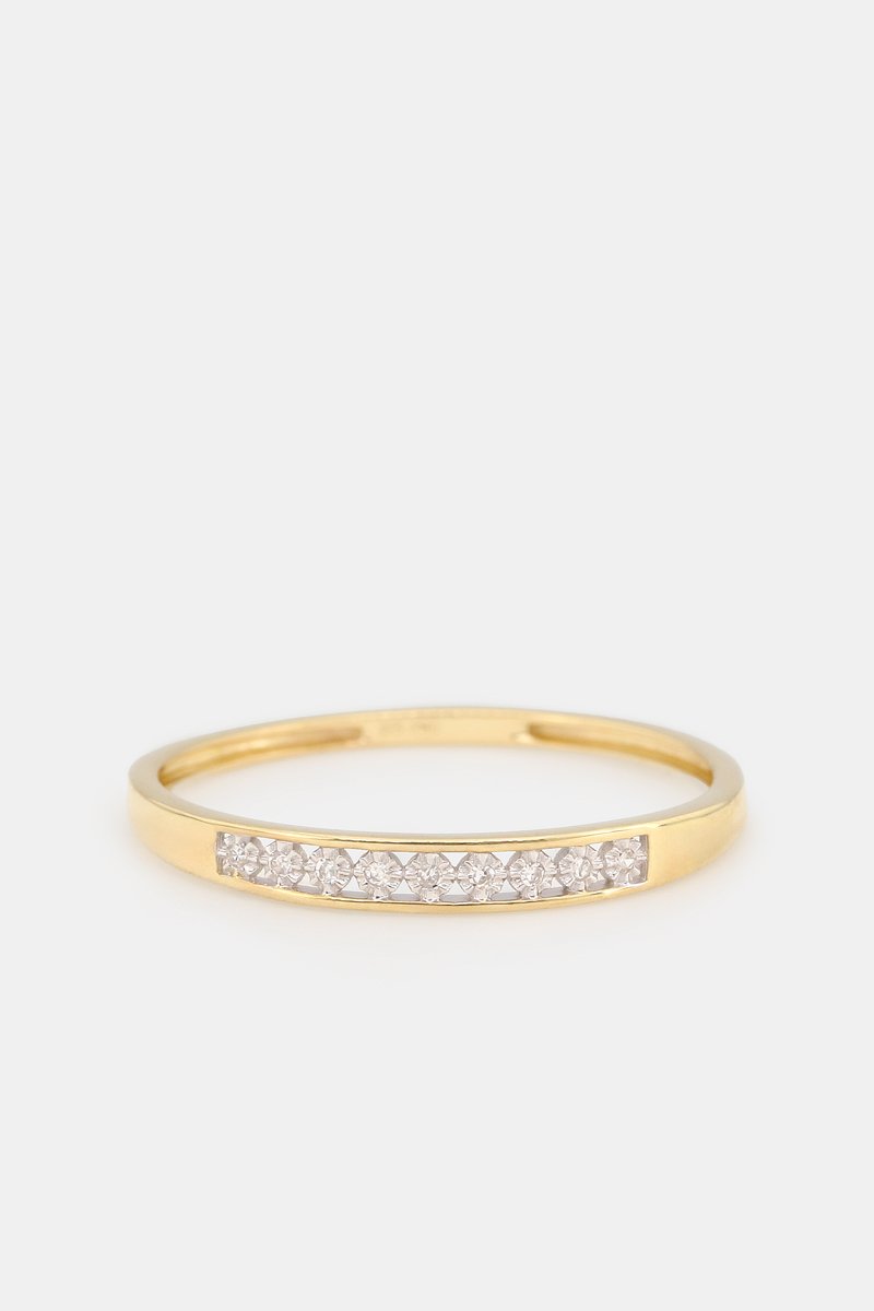 Materiaal: geelgoud 375/1000 en diamanten 0,02 karaat/9