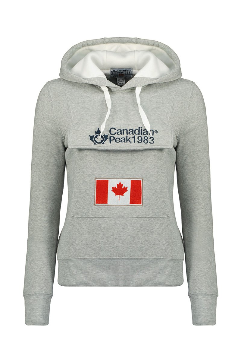 Logo en geborduurde Canadese vlag aan de voorkant.