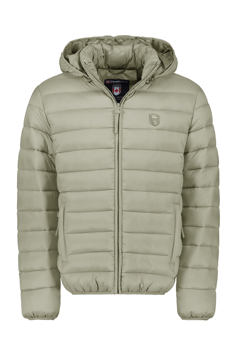 Gewatteerde jas met afneembare capuchon.