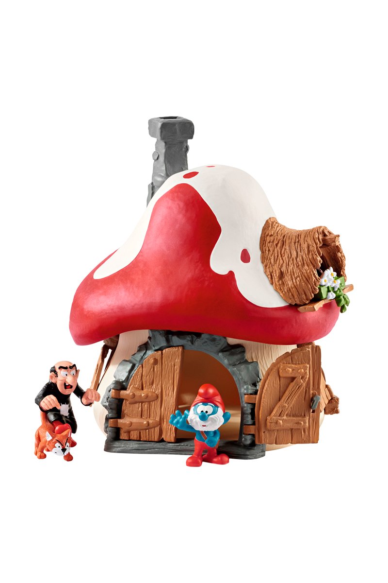 De speelset bevat een groot smurfenhuis, Grote Smurf en Gargamel met zijn trouwe kater Azraël.