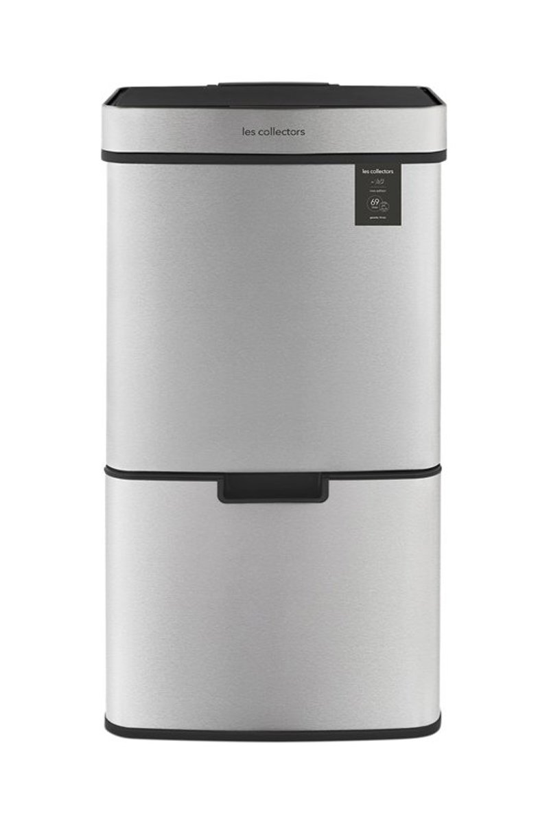 Totale inhoud 69 l: 2 bakken van 11 l en een bak van 47 l, die het dagelijks gescheiden afvalbeheer vergemakkelijken.