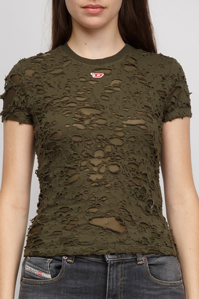 Top van 2 materialen - Olijfgroen