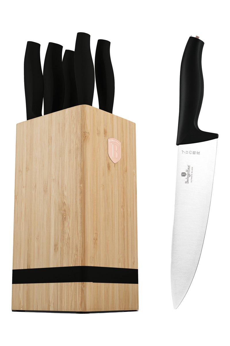 Bamboe Messenblok met 5 Roestvrijstalen Messen Black Rose