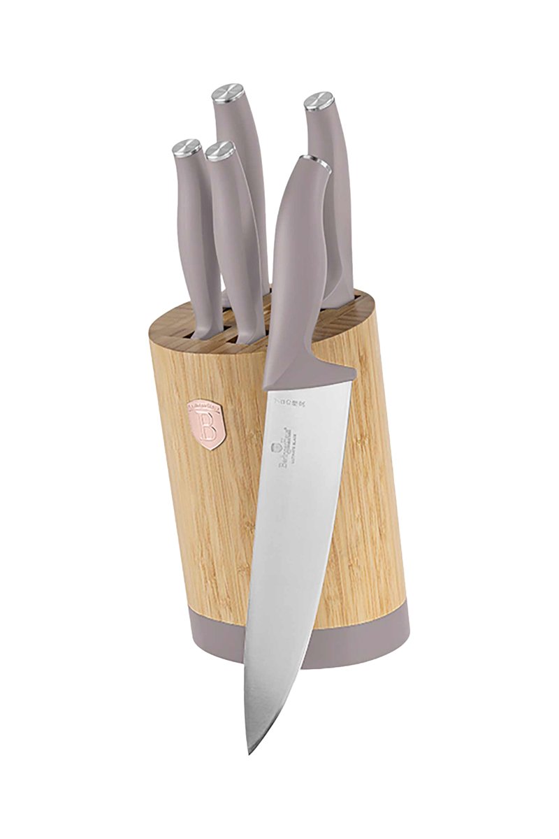 5-delig Bamboe en Roestvrijstalen Messenblok Matt Taupe