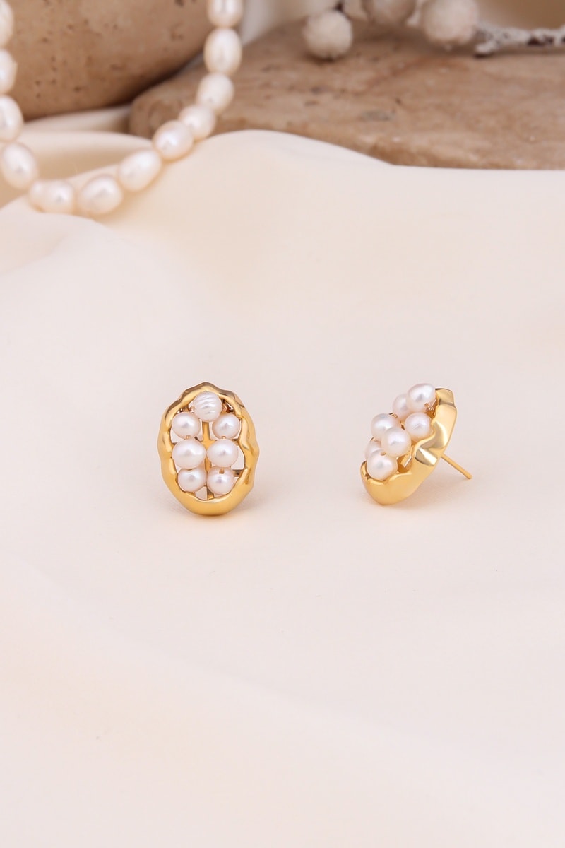 Oorbellen ingelegd met 7 kunstparels.