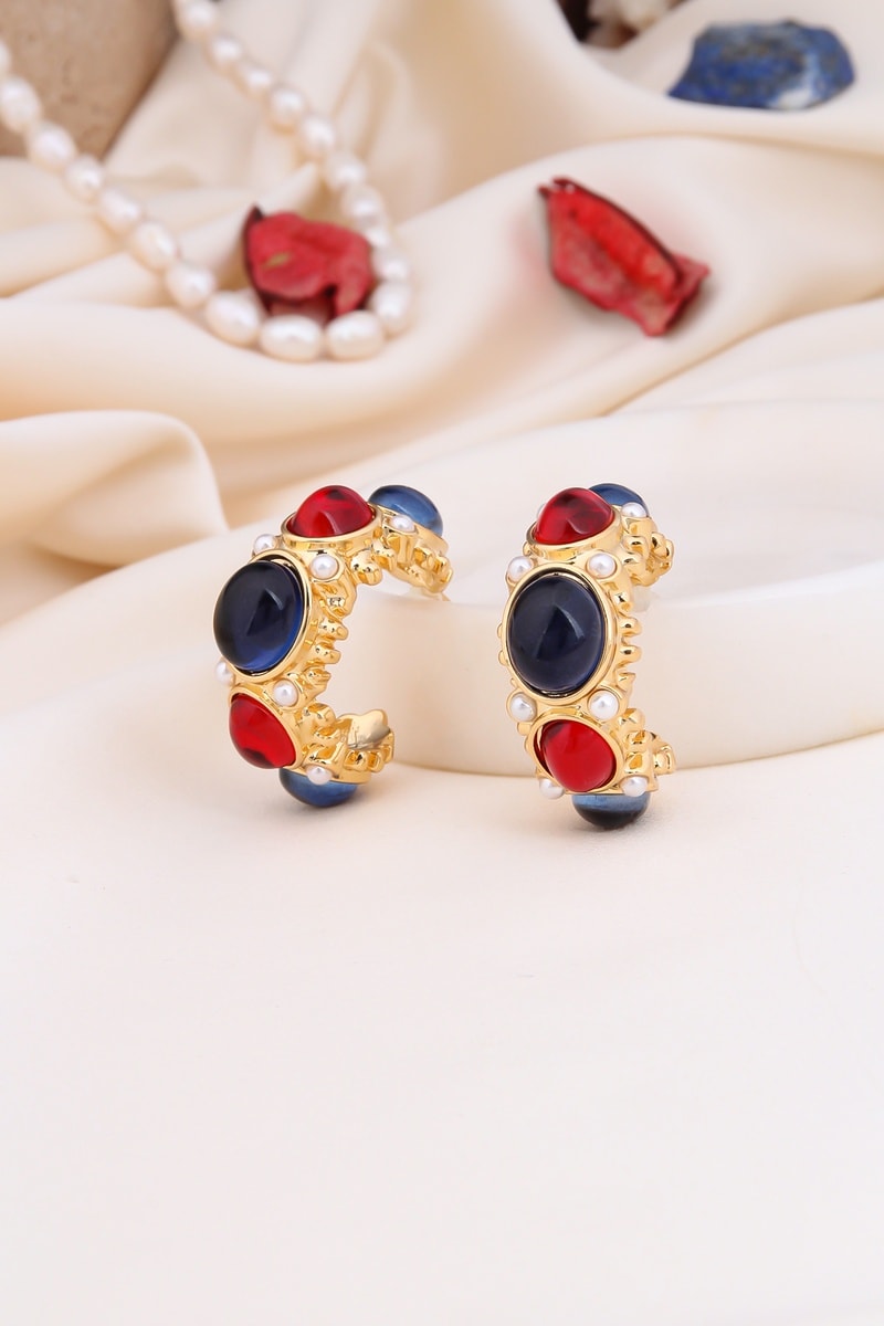 Creolen ingelegd met 5 zirkonia’s en kunstparels.