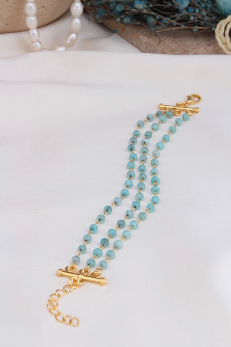Armband met meerdere rijen van doublé geelgoud ingelegd met amazonieten.