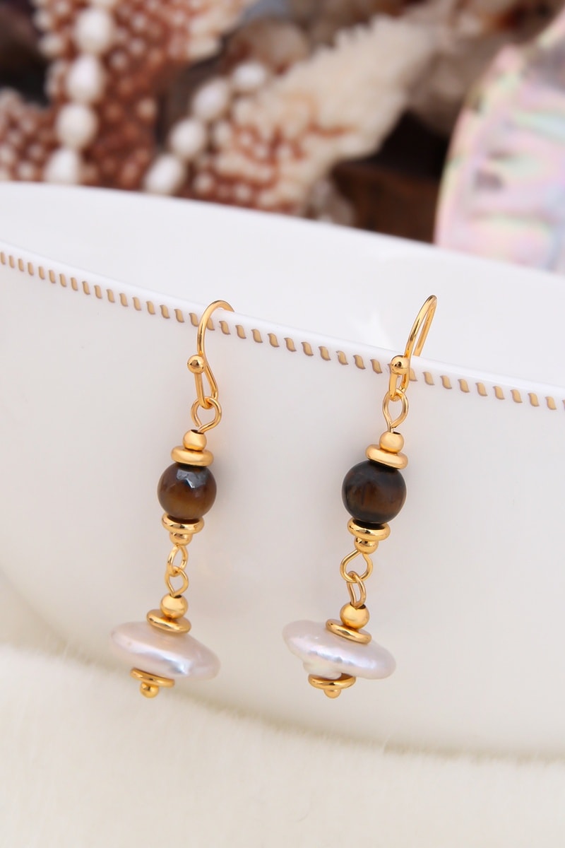 Hangende oorbellen ingelegd met parelmoer en kunstparels.
