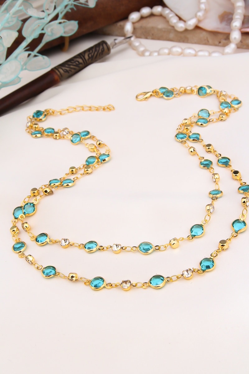 Ketting ingelegd met kristallen.