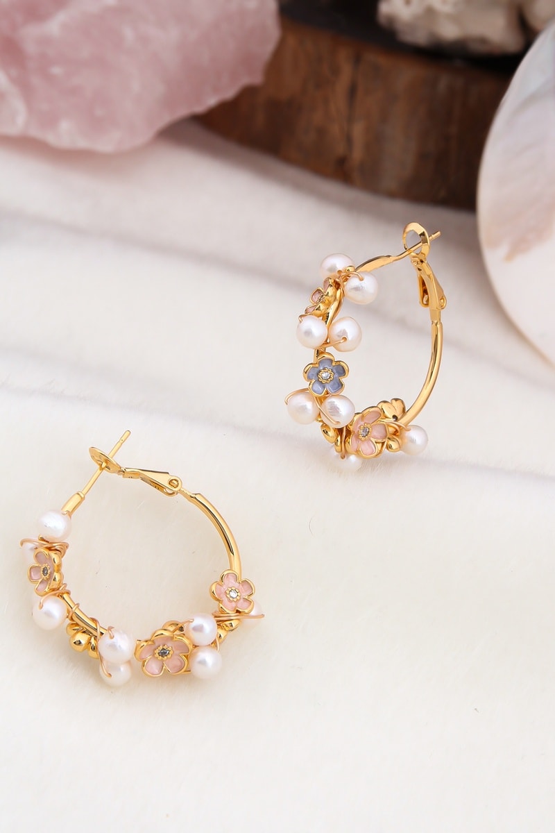 Creolen ingelegd met 8 kunstparels en kristallen.