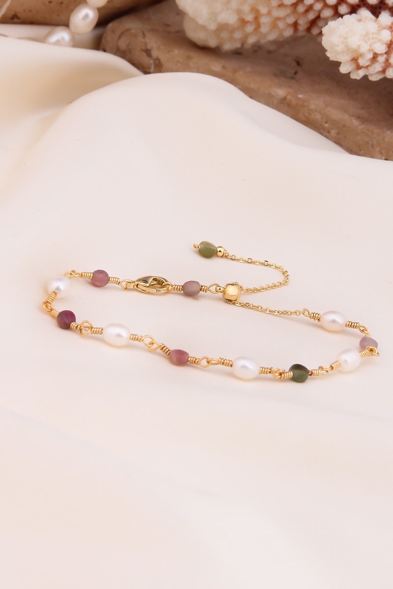 Armband ingelegd met 7 agaten en 5 kunstparels.