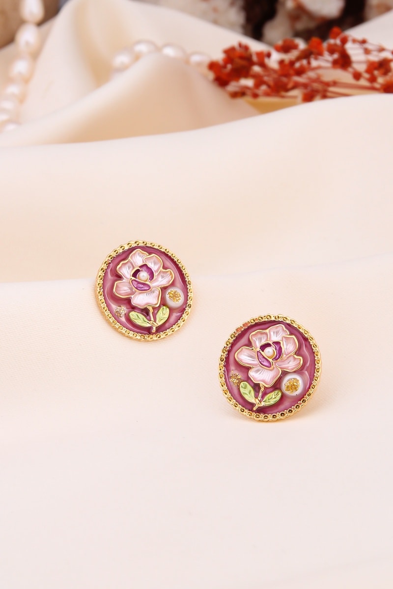 Oorbellen - Poederroze en Goudkleurig