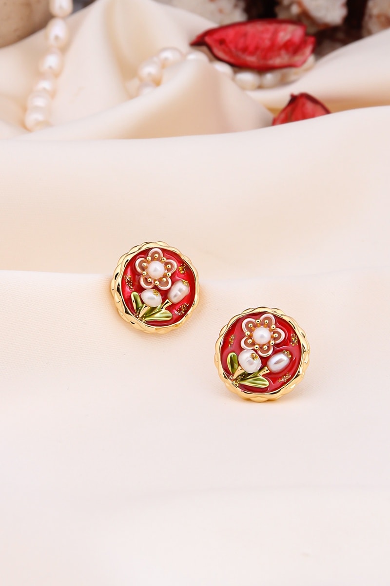 Oorbellen - Rood en Goudkleurig