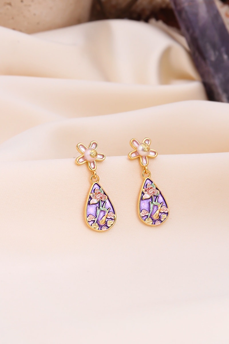 Oorbellen - Goudkleurig en Paars
