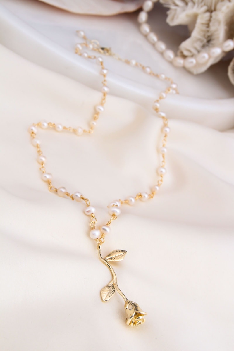 Ketting ingelegd met kunstparels.