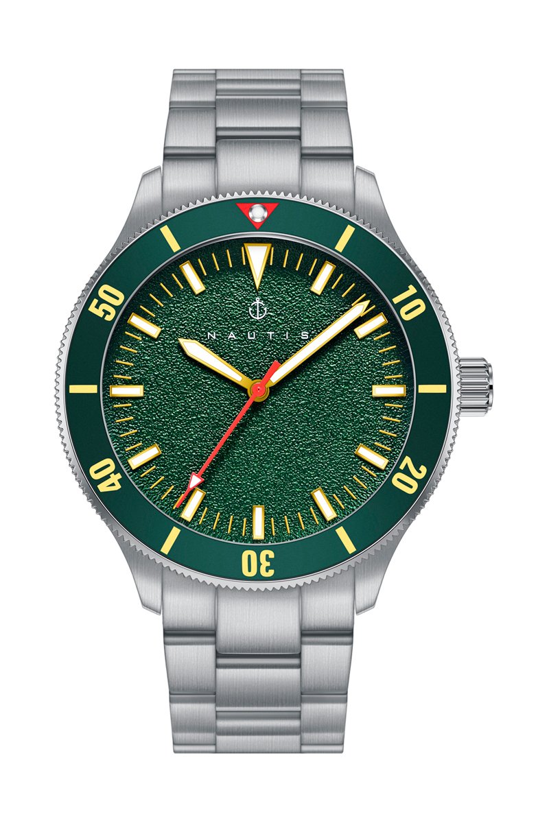 Stalen Quartz Horloge Deacon - Zilverkleurig en Groen - Nautis