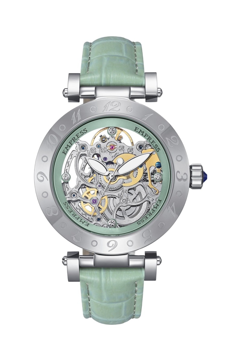 Leren Quartz Horloge Théodora - Zilverkleurig en Lichtgroen