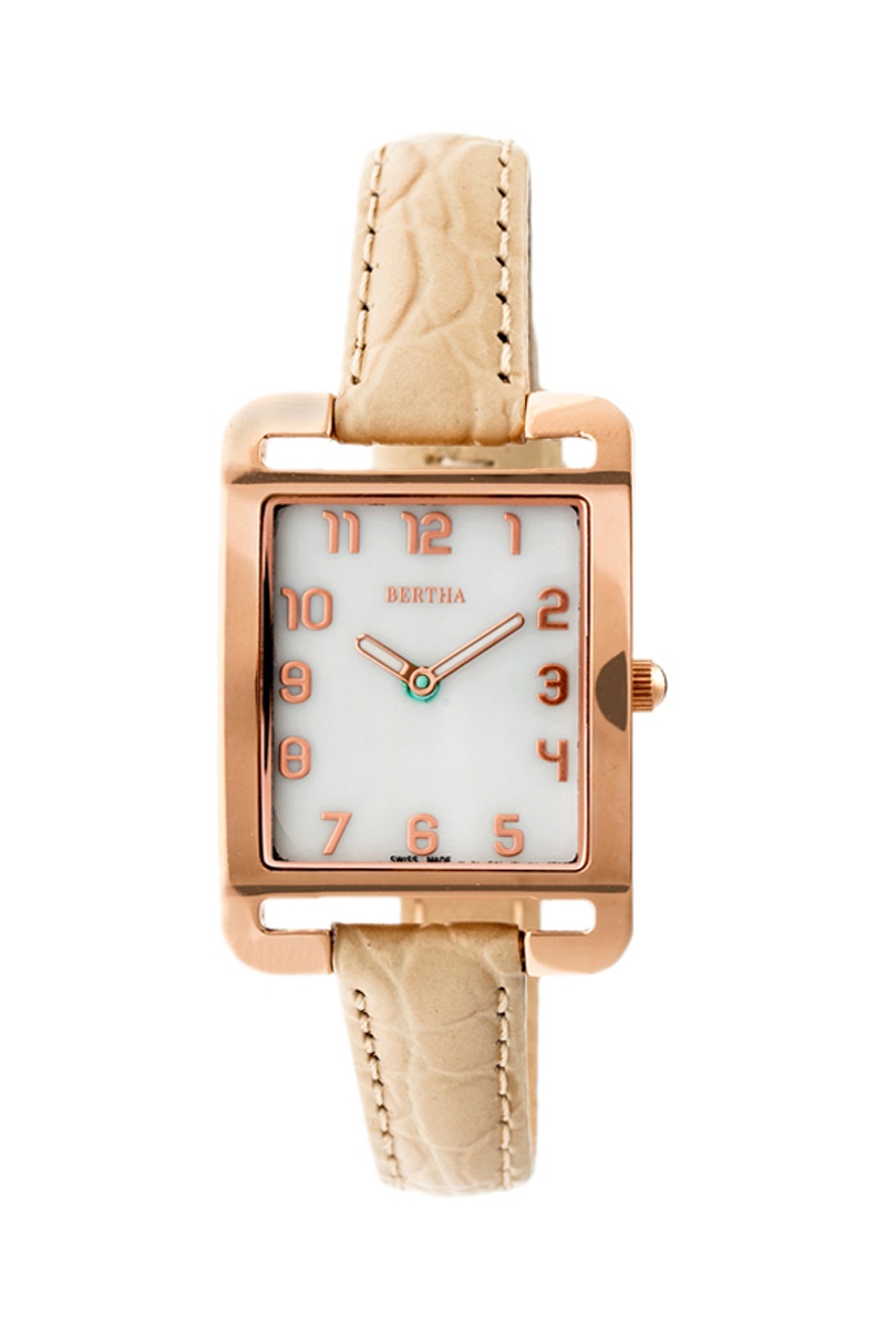 Leren Quartz Horloge Marisol - Beige en Roségoudkleurig