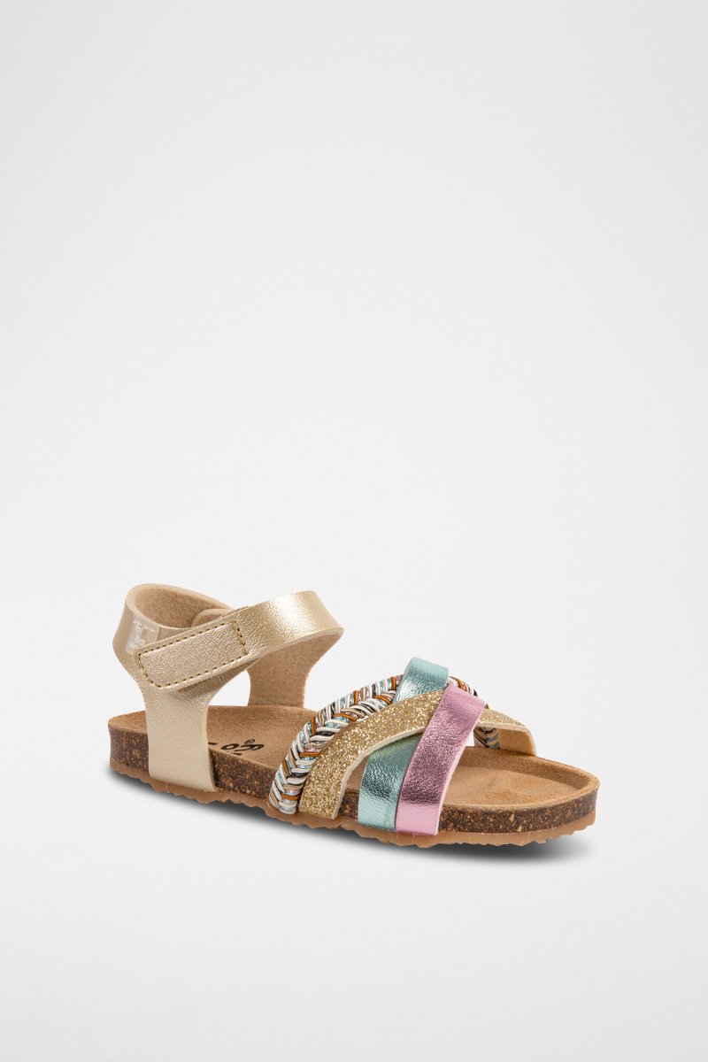 Gekruiste bandjes, glinsterend en gevlochten effect aan de voorkant.