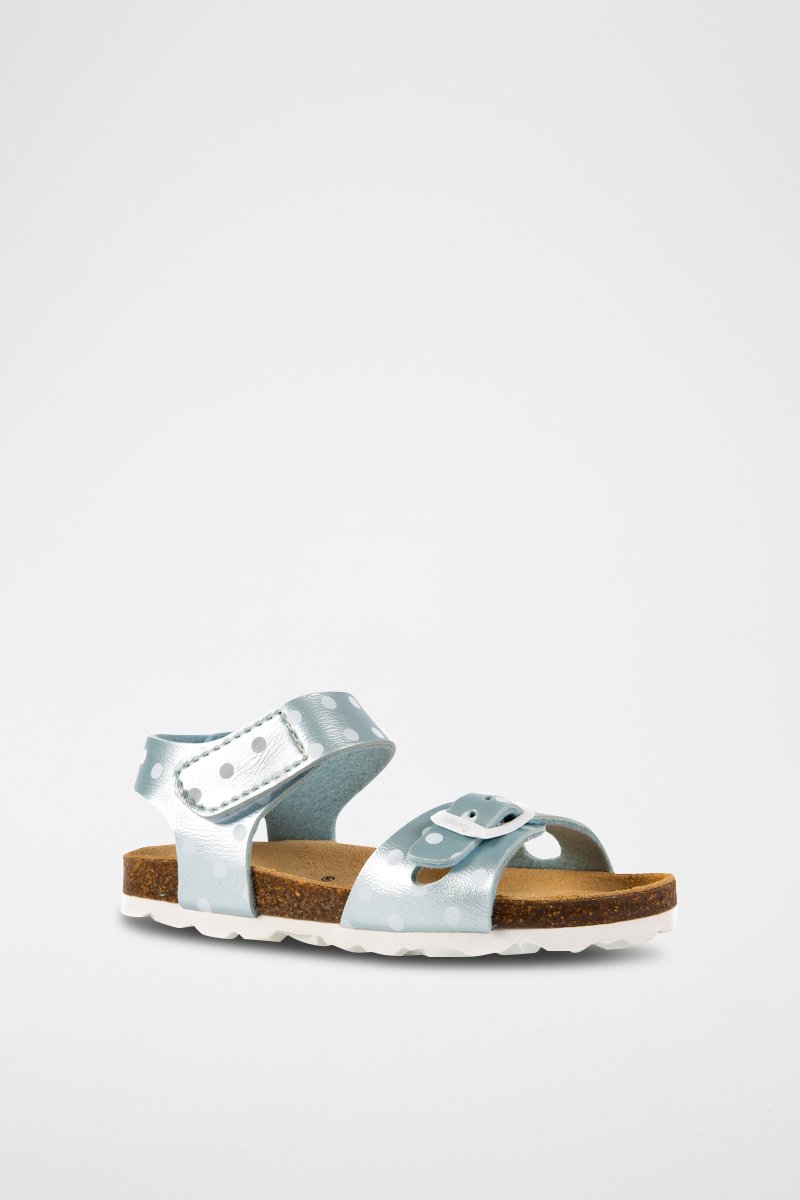 Gespbandje aan de voorkant en klittenband aan de zijkant.